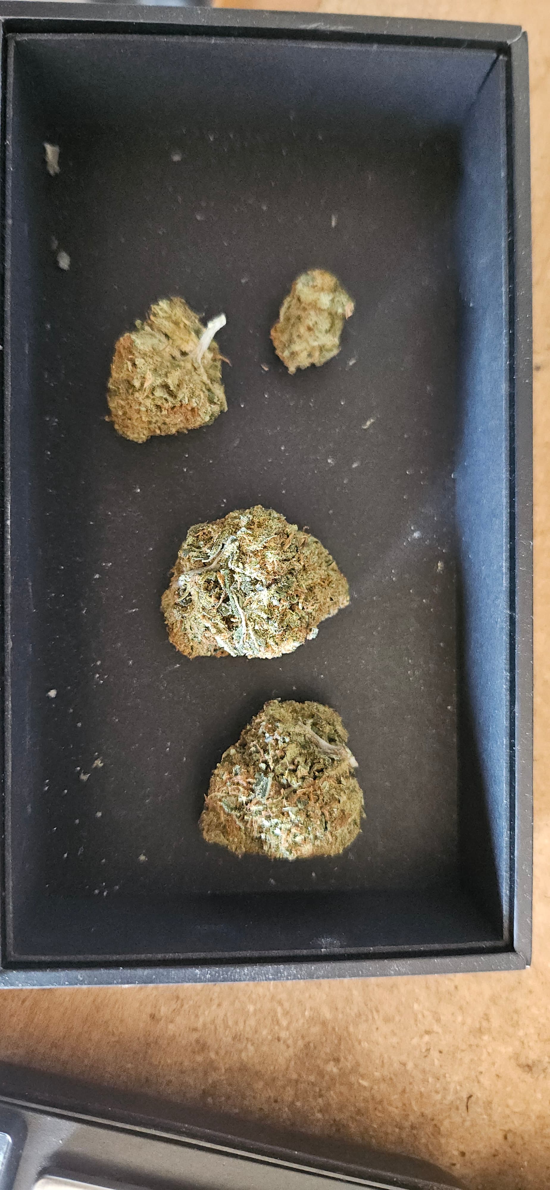 Les buds sont superbes : un joli vert pâle avec une tonne de pistils orange. C’est très compact, et le taux d’humidité semble excellent. Juste en « tripotant » les cocottes, on sent déjà une petite touche collante sur les doigts.
