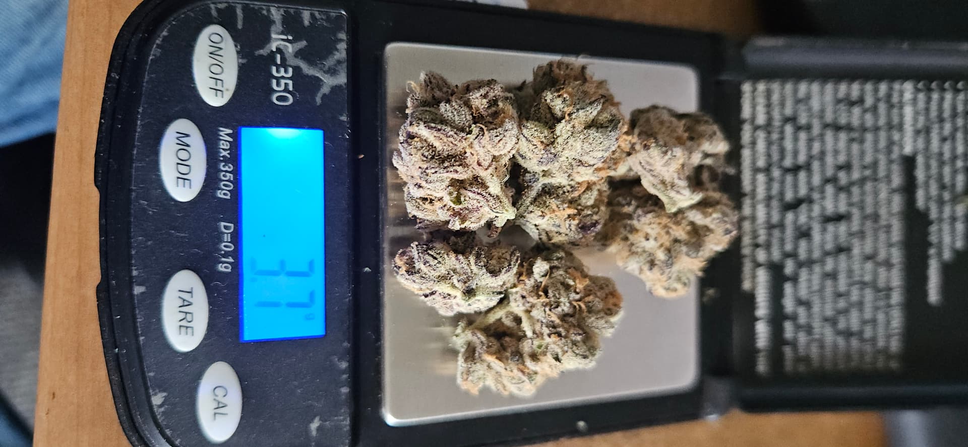 Les cocottes sont de taille moyenne et franchement superbes. La couleur est très foncée, avec des pointes presque complètement noires, rehaussées de beaux pistils orange et d’un givrage généreux. L’humidité est parfaite et la trim est impeccable. C’est vraiment un produit agréable à regarder.