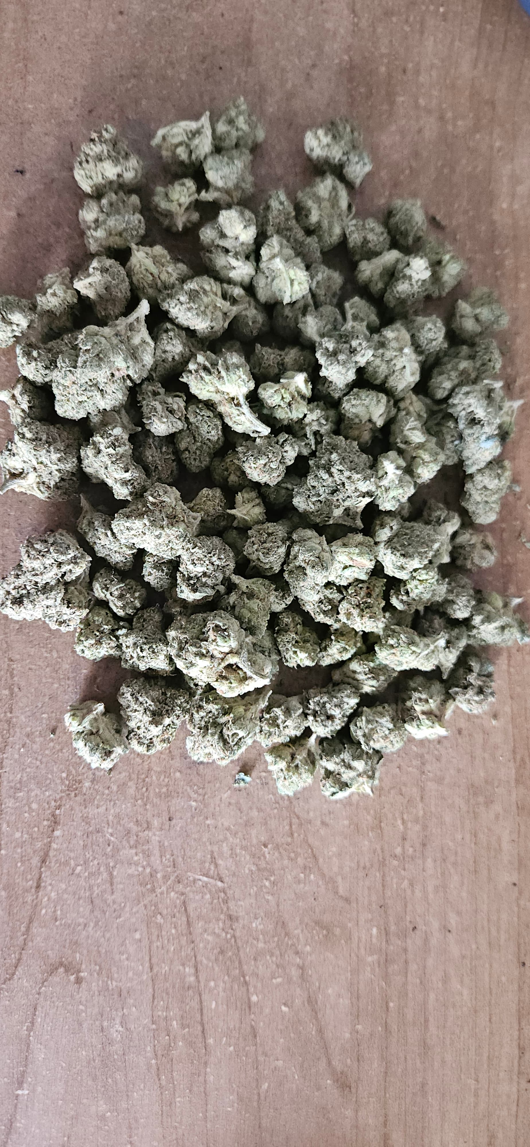 Visuellement, c’est correct… voire un peu décevant à première vue. Les buds sont de format popcorn à petit, mais ils arborent un beau vert vif, de jolis pistils orange et sont généreusement givrés.